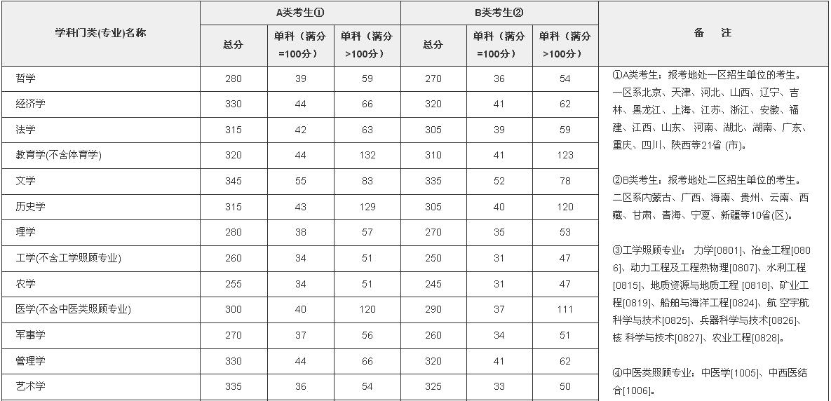 2017年全国硕士研究生招生考试考生进入复试的初试成绩基本要求(学术学位类)